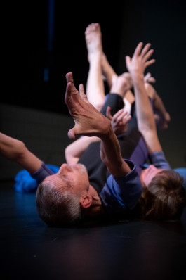 "Als Roland 2018 vorschlug, zusammen ein Duett zu entwickeln, war ich neugierig, wie wir uns miteinander verbinden können. Uns als zwei Individuen zu verbinden und manchmal sogar zu einem zu verschmelzen. Diese Idee des 'Verschmelzens' entstand vor allem durch die Wahrnehmung von Roland und seinen Assistent:innen, denn sie arbeiteten ständig daran, seinen Körper zu erweitern - indem sie beispielsweise seine Hände werden, um ihn zu füttern. Dieser Erweiterung steht die Idee der Kontraktion gegenüber - von Anfang an arbeiteten wir mit Schlafsäcken, die unseren beiden Körpern gleichermaßen eine Begrenzung auferlegten und uns dadurch ermöglichten, gleichauf von einer ebenbürtigen Ausgangsbasis auszugehen.