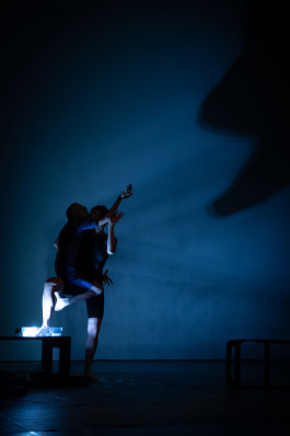 Dieses intime Duett überschreitet die physischen Grenzen der Performer*innen und imaginiert eine gemeinsame Bewegungssprache, die von Seeanemonen, Flüssigkeiten und Erdoberflächen inspiriert ist.